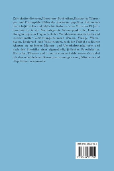 Der Band nimmt mit Zeitschriftenliteratur, Illustrierten, Buchreihen, Kabarettaufführungen und Purimspielen ein breites Spektrum an populären Phänomenen deutsch-jüdischer und jiddischer Kultur von der Mitte des 19. Jahrhunderts bis in die Nachkriegszeit in den Blick. Schwerpunkte der Untersuchungen liegen in Fragen nach den Verfahrensweisen medialer und institutioneller Vermittlungsinstanzen (Presse, Verlage, Warenhäuser, Boulevard- und Volkstheater), nach der Teilhabe jüdischer Akteure an modernen Massen- und Unterhaltungskulturen und nach den Spezifika einer eigenständig ,jüdischen' Populärkultur. Historiker, Theater- und Literaturwissenschaftler setzen sich dabei mit den verschiedenen Konzeptualisierungen von ,Jüdischem' und ,Populärem' auseinander. Dabei wird die Unterscheidung zwischen Jüdischem und Nichtjüdischem sowie zwischen Populär- und Hochkultur immer wieder problematisiert.