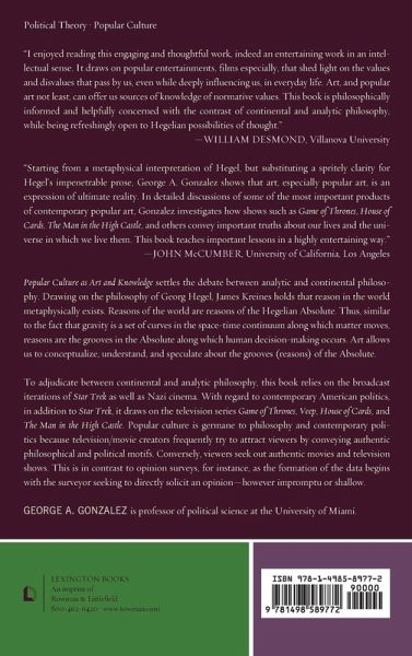 This volume settles the debate between analytic and continental philosophy. It turns to art, more specifically popular culture, to demonstrate the validity of continental philosophy. Drawing on the philosophy of Georg Hegel (perhaps the most important of continental philosophers), James Kreines holds that reason in the world metaphysically exists. Reasons of the world are reasons of the Hegelian Absolute. Thus, similar to the fact that gravity is curves in the space-time continuum along which matter moves - reasons are the grooves in the Absolute along which human decision-making occurs. Art allows us to conceptualize, understand, speculate about the grooves (reasons) of the Absolute. Two key points can be drawn from Kreines's position: first, normative values are embedded in reality. Thus, in complete contradistinction to analytic philosophy, there is no bifurcation between the empirical and the normative - to exist is to have normative value. Secondly, the role of social science is to cogitate, explore, identify the reasons of the world that shape social, political norms. Such an approach would decisively move the social sciences away from an emphasis on statistically significant patterns of human behavior (e.g., voting studies) and toward an approach that seeks to analyze the reasons of the world that motivate/shape social and political decisions. Art (particularly popular culture) becomes an important source in identifying the way that people reason about the world and how they perceive political elites reasoning in the world. To adjudicate between continental and analytic philosophy this book on relies on the broadcast iterations of Star Trek, as well as Nazi cinema. With regard to contemporary American politics, in addition to Star Trek, it draws on the television series Game of Thrones, Veep, House of Cards, and The Man in the High Castle. Popular culture is germane to philosophy and contemporary politics because television/movie creators frequently try to attract viewers by conveying authentic philosophical and political motifs. Conversely, viewers seek out authentic movies and television shows. This is in contrast to opinion surveys (for instance), as the formation of the data begins with the surveyor seeking to directly solicit an opinion - however impromptu or shallow.
