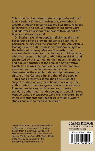 This is the first book-length study of popular culture in Islamic society, drawing together a wealth of Arabic sources to explore literature, religious celebrations and annual festivities in medieval Cairo and addressing questions of relevance throughout the Islamic world and beyond. Dr Shoshan examines popular religion against the background of the growing influence of Sufism, discussing the sermons of Abn Ata Allah, a leading Cairene Sufi, which shed considerable light on the beliefs of ordinary Muslims. The author then analyses the importance of a biography of Muhammad, which has been attributed to Abu'l-Hasan al-Bakri and suppressed by the learned, and traces the origins and popular practices of the annual Nawruz festival. Finally he explores the political beliefs and economic expectations of the Cairene commoners and demonstrates the complex relationship between the culture of the Cairene elite and that of the people.