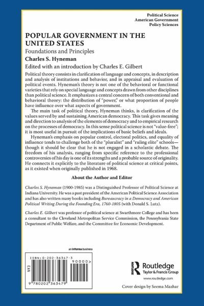 Political theory consists in clarification of language and concepts, in description and analysis of institutions and behavior, and in appraisal and evaluation of political events. Hyneman's theory is not one of the behavioral or functional varieties that rely on special language and concepts drawn from other disciplines than political science. It emphasizes a central concern of both conventional and behavioral theory: the distribution of "power," or what proportion of people have influence over what aspects of government. He is also interested in how power is shared, divided, checked, and balanced. The main task of political theory, Hyneman thinks, is clarification of the values served by and sustaining American democracy. This task gives meaning and direction to analysis of the elements of democracy and to empirical research on the processes of democracy. In this sense political science is not "value-free"; it is most useful in pursuit of the implications of basic beliefs and ideals. These beliefs and ideals can be found in historical statements as well as inferred from institutions and behavior. Hyneman's emphasis on popular control, electoral politics, and equality of influence tends to challenge both of the "pluralist" and "ruling elite" schools-though it should be clear that he is not engaged in a scholastic debate. The freedom of his analysis, ranging from specific reference to the professional controversies of his day is one of its strengths and a probable source of originality. He connects it explicitly to the literature of political science at critical points, as it existed when originally published in 1968.