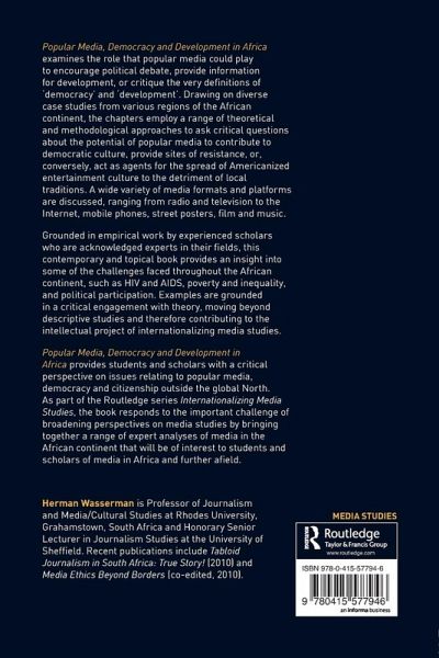 Popular Media, Democracy and Development in Africa examines the role that popular media could play to encourage political debate, provide information for development, or critique the very definitions of 'democracy' and 'development'. Drawing on diverse case studies from various regions of the African continent, essays employ a range of theoretical and methodological approaches to ask critical questions about the potential of popular media to contribute to democratic culture, provide sites of resistance, or, conversely, act as agents for the spread of Americanized entertainment culture to the detriment of local traditions. A wide variety of media formats and platforms are discussed, ranging from radio and television to the Internet, mobile phones, street posters, film and music. As part of the Routledge series Internationalizing Media Studies, the book responds to the important challenge of broadening perspectives on media studies by bringing together a range of expert analyses of media in the African continent that will be of interest to students and scholars of media in Africa and further afield.