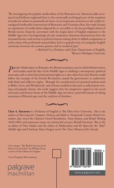 "By investigating the popular medievalism of the Romantic era, Simmons adds an essential and hitherto neglected facet to the continually evolving picture of the reception of medieval culture in postmedieval times. As an important corrective to the widely investigated medievalist reinventions of Romantic and Victorian elites, her study focuses on expressions of medievalismadopted by or accessible to the less privileged classes of British society. Expertly conversant with the longue durée of English responses to the Middle Ages since the beginnings of early modernity, Simmons demonstrates how the increased literacy and interest in political matters among those in skilled occupations as well as those who performed manual labor led to a popular view of a uniquely English continuity between the nation's present and its medieval past." - Richard Utz, Professor and Chair, Department of English, Western Michigan University