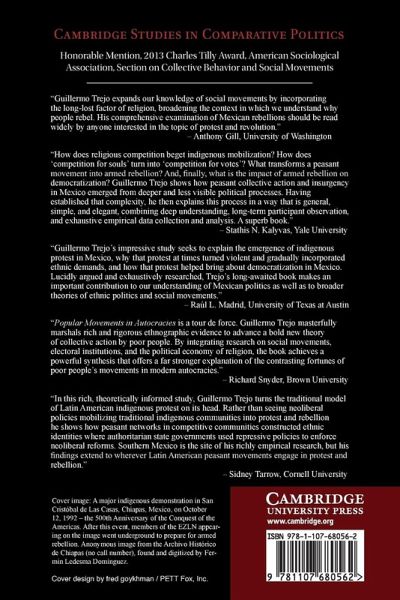 This book presents a new explanation of the rise, development and demise of social movements and cycles of protest in autocracies; the conditions under which protest becomes rebellion; and the impact of protest and rebellion on democratization. Focusing on poor indigenous villages in Mexico's authoritarian regime, the book shows that the spread of US Protestant missionaries and the competition for indigenous souls motivated the Catholic Church to become a major promoter of indigenous movements for land redistribution and indigenous rights. The book explains why the outbreak of local rebellions, the transformation of indigenous claims for land into demands for ethnic autonomy and self-determination, and the threat of a generalized social uprising motivated national elites to democratize. Drawing on an original dataset of indigenous collective action and on extensive fieldwork, the empirical analysis of the book combines quantitative evidence with case studies and life histories.