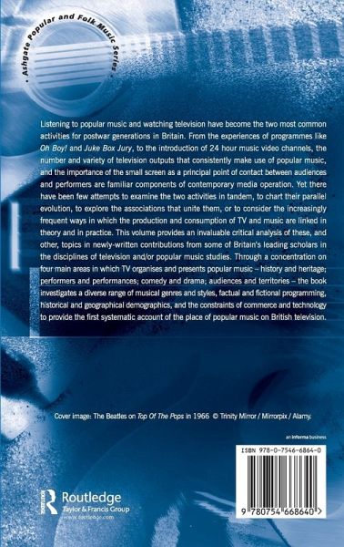 Introduction Ian Inglis; Part 1 History And Heritage; Chapter 1 Constructing The Histories Of Popular Music: The Britannia Series Paul Long Tim Wall; Chapter 2 Television Documentary Pop Stardom And Auto/Biographical Narratives Ian Goode; Chapter 3 Classic Albums: The Re-Presentation Of The Rock Album On British Television Andy Bennett Sarah Baker; Chapter 4 Stone Fox Chase: The Old Grey Whistle Test And The Rise Of High Pop Television Peter Mills; Part 2 Performers And Performances; Chapter 5 Ready Steady Go! Televisual Pop Style And The Careers Of Dusty Springfield Cilla Black Sandie Shaw And Lulu Adrienne Lowy; Chapter 6 Sworn In: Today Bill Grundy And The Sex Pistols Mark Duffett; Chapter 7 Indie On The Box: The Contribution Of Television To UK Independent Music From C86 To Britpop Rupa Huq; Part 3 Comedy And Drama; Chapter 8 Dad's Army: Musical Images Of A Nation At War James Kearney. Sheila Whiteley; Chapter 9 Little Ladies: Rock Follies And British Television's Dramatisation Of Rock Music Peter Hutchings; Chapter 10 Pop Half-Cocked: A History Of Revolver Richard Mills; Chapter 11 A Sunken Dream: Music And The Gendering Of Nostalgia In Life On Mars Estella Tincknell; Part 4 Audiences and Territories; Chapter 12 Here There and Everywhere: Introducing the Beatles Ian Inglis; Chapter 13 Granada TV Johnny Hamp and the Blues and Gospel Train: Masters of Reality Mike Brocken; Chapter 14 A Postman Mans Up: The Changing Musical Identities Of Postman Pat Nicholas Reyland;