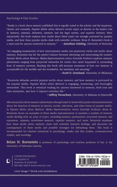 In Popular Myths about Memory, Bornstein confronts popular myths about memory with scientific evidence on memory permanence, recovered memory and repression, amnesia, eyewitness memory, superior memory, and other topics. This book is recommended for scholars interested in psychology, media and film studies, communication studies, and sociology.