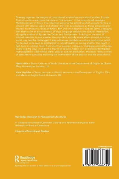 Drawing together the insights of postcolonial scholarship and cultural studies, Popular Postcolonialisms questions the place of 'the popular' in the postcolonial paradigm. Multidisciplinary in focus, this collection explores the extent to which popular forms are infused with colonial logics, and whether they can be employed by those advocating for change. It considers a range of fiction, film, and non-hegemonic cultural forms, engaging with topics such as environmental change, language activism, and cultural imperialism alongside analysis of figures like Tarzan and Frankenstein. Building on the work of cultural theorists, it asks whether the popular is actually where elite conceptions of the world may best be challenged. It also addresses middlebrow cultural production, which has tended to be seen as antithetical to radical traditions, asking whether this might, in fact, form an unlikely realm from which to question, critique, or challenge colonial tropes. Examining the ways in which the imprint of colonial history is in evidence (interrogated, mythologized or sublimated) within popular cultural production, this book raises a series of speculative questions exploring the interrelation of the popular and the postcolonial.