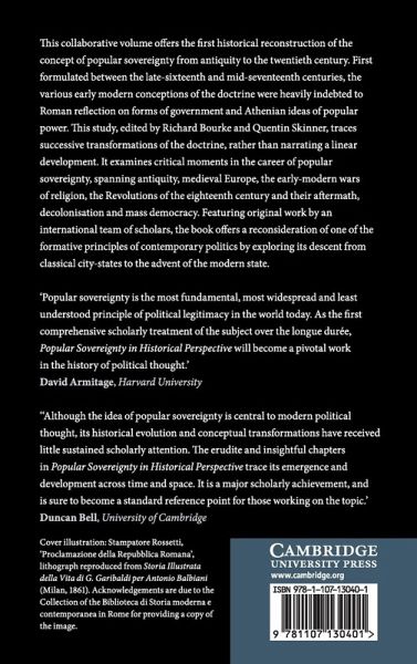 This collaborative volume offers the first historical reconstruction of the concept of popular sovereignty from antiquity to the twentieth century. First formulated between the late sixteenth and mid-seventeenth centuries, the various early modern conceptions of the doctrine were heavily indebted to Roman reflection on forms of government and Athenian ideas of popular power. This study, edited by Richard Bourke and Quentin Skinner, traces successive transformations of the doctrine, rather than narrating a linear development. It examines critical moments in the career of popular sovereignty, spanning antiquity, medieval Europe, the early modern wars of religion, the revolutions of the eighteenth century and their aftermath, decolonisation and mass democracy. Featuring original work by an international team of scholars, the book offers a reconsideration of one of the formative principles of contemporary politics by exploring its descent from classical city-states to the advent of the modern state.