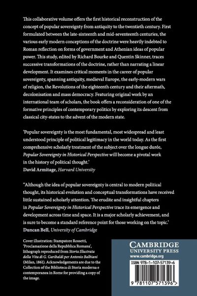 This collaborative volume offers the first historical reconstruction of the concept of popular sovereignty from antiquity to the twentieth century. First formulated between the late sixteenth and mid-seventeenth centuries, the various early modern conceptions of the doctrine were heavily indebted to Roman reflection on forms of government and Athenian ideas of popular power. This study, edited by Richard Bourke and Quentin Skinner, traces successive transformations of the doctrine, rather than narrating a linear development. It examines critical moments in the career of popular sovereignty, spanning antiquity, medieval Europe, the early modern wars of religion, the revolutions of the eighteenth century and their aftermath, decolonisation and mass democracy. Featuring original work by an international team of scholars, the book offers a reconsideration of one of the formative principles of contemporary politics by exploring its descent from classical city-states to the advent of the modern state.