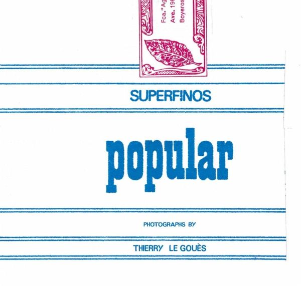 New from high-profile fashion photographer Thierry Le Gouès comes a lavish artist's book, Popular, an earthy, luring tome of the rarely shown Havana social scene. In Le Gouès' provocative duotone and sensuous four-color photographs, we're seduced by a culture of great joy amongst great poverty: raucous, heat-soaked street parties; spirited sparring matches in crumbling gymnasiums; voluptuous nudes plying their wares in derelict mansions; wizened balladeers savoring impossibly large Cohibas... Le Gouès' models are drawn from the street: a mixture of Buena Vista Social Club stars and underground legends, the miscegenation of which, in Le Gouès' expert fashion sense, serves to create a raw, sexy style-one of abandon out of necessity, out of a lust for life-a spirit Le Gouès sees in Cuba as ubiquitous as the cigarettes from which the book draws its name.