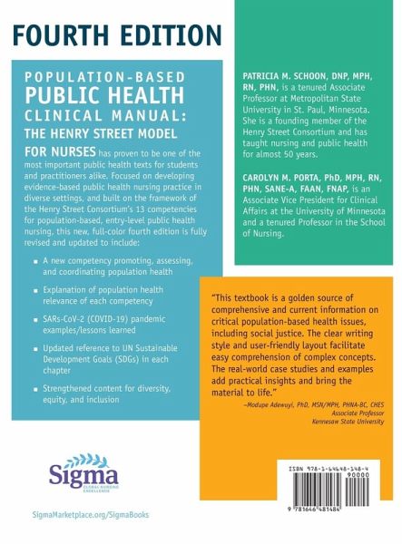 Population-Based Public Health Clinical Manual: The Henry Street Model for Nurses has proven to be one of the most important public health texts for students and practitioners alike. Focused on developing evidence-based public health nursing practice in diverse settings and built on the framework of the Henry Street Consortium's 12 competencies for population-based, entry-level public health nursing, this full-color, new fourth edition is fully revised and updated to support readers' exploration of the field of public health nursing and the unique responsibilities and challenges that come with being a public health nurse. ¿¿A new competency promoting, assessing, and coordinating population health Explanation of population health relevance of each competency SARs-CoV-2 (COVID-19) pandemic examples/lessons learned Updated reference to UN Sustainable Development Goals (SDGs) in each chapter Strengthened content for diversity, equity, and inclusion