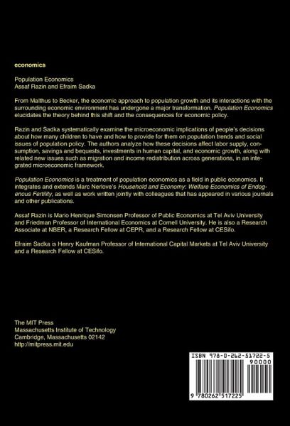 From Malthus to Becker, the economic approach to population growth and its interactions with the surrounding economic environment has undergone a major transformation. Population Economics elucidates the theory behind this shift and the consequences for economic policy. From Malthus to Becker, the economic approach to population growth and its interactions with the surrounding economic environment has undergone a major transformation. Population Economics elucidates the theory behind this shift and the consequences for economic policy. Razin and Sadka systematically examine the microeconomic implications of people's decisions about how many children to have and how to provide for them on population trends and social issues of population policy. The authors analyze how these decisions affect labor supply, consumption, savings and bequests, investments in human capital, and economic growth, along with related new issues such as migration and income redistribution across generations, in an integrated microeconomic framework. Population Economics is a thoroughly modern treatment of population economics as a field in public economics. It integrates and extends Marc Nerlove's Household and Economy: Welfare Economics of Endogenous Fertility, as well as work written jointly with colleagues that has appeared in various journals and other publications.