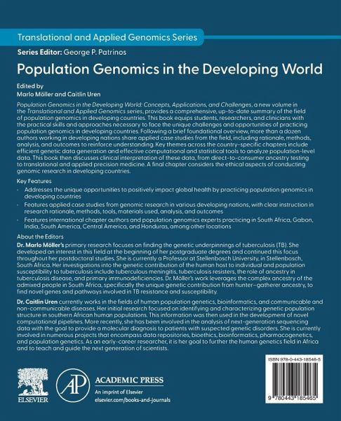 Population Genomics in the Developing World: Concepts, Applications, and Challenges, a new volume in the Translational and Applied Genomics series, provides a comprehensive, up-to-date summary of the field of population genomics in developing countries. The book equips students, researchers, and clinicians with the practical skills and approaches necessary to face the unique challenges and opportunities of practicing population genomics in developing countries. Following a brief foundational overview, more than a dozen authors working in developing nations share applied case studies from the field, including rationale, methods, analysis, and outcomes to reinforce understanding. Key themes across the country specific chapters include efficient genetic data generation and effective computational and statistical tools to analyze population-level data. The book then discusses clinical interpretation of this data, from direct-to-consumer ancestry testing to translational and applied precision medicine. A final chapter considers ethical aspects of conducting genomic research in developing countries.