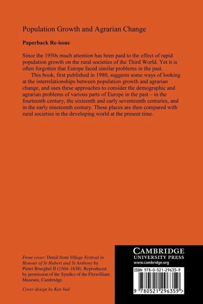 Since the 1950s much attention has been paid to the effect of rapid population growth on the rural societies of the Third World. Yet it is often forgotten that Europe faced similar problems in the past. This book, first published in 1980, suggests some ways of looking at the interrelationships between population growth and agrarian change, and uses these approaches to consider the demographic and agrarian problems of various parts of Europe in the past - in the fourteenth century, the sixteenth and early seventeenth centuries, and in the early nineteenth century. These places are then compared with rural societies in the developing world at the present time.
