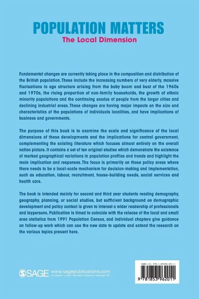 The purpose of this book is to examine the scale and significance of the local dimensions of these developments and the implications for central government complementing the existing literature, which focuses almost entirely on the overall national picture. It contains a set of ten original studies which demonstrate the existence of marked geographical variations in population profiles and trends and highlight the main implications and responses. The focus is primarily on those policy areas where there needs to be a local-scale mechanism for decision-making and implementation, such as education, labour recruitment, housebuilding needs, social services and health care.