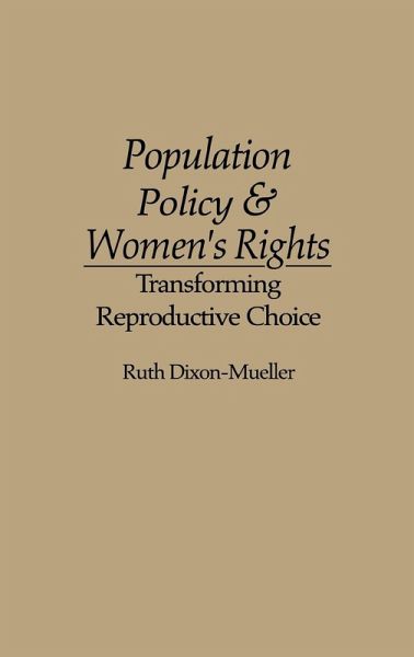 Global population policies are under intense scrutiny as environmental and development organizations worry about the threat of overpopulation and call for stronger measures of population control. At the same time, women's organizations in both developing and industrialized countries are intensifying their attacks on the simplistic thinking of the population controllers and the quest for a technological fix on the part of the family-planning establishment. Population Policy and Women's Rights presents a forceful argument for a more responsive approach to fertility limitation in developing countries--one that builds on women's concerns about their survival and security and strengthens women's rights. Ruth Dixon-Mueller reviews the history of the debate between feminists and the birth control movement, examines the forces affecting U.S. population policy on the domestic and international fronts, and documents the relationship between women's reproductive rights and their rights in other areas. Dixon-Mueller begins by focusing on the evolution of the political positions of the women's movement and the birth control/population control movements. She examines the relationship between different aspects of women's rights and reproductive choice in developing countries. She concludes with a proposal for a woman-centered approach to reproductive policy-making, based on promoting women's rights and protecting women's sexual and reproductive health. Written from a sociological perspective, Population Policy and Women's Rights is recommended for researchers, policy-makers, and students in the fields of population, development, women's studies, and human rights.