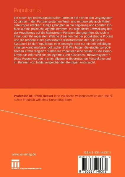 "Der von [...] Frank Decker herausgegebene Sammelband Populismus ist eine hervorragende Einführung in das Thema und bietet die derzeit beste Zusammenfassung der deutschen Populismusforschung." Berliner Republik, 05/2006
