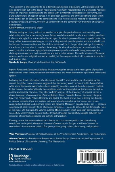'Anti-pluralism is often assumed to be a defining characteristic of populism, yet this relationship has only seldom been put to the test of rigorous empirical study. Populist Parties and Democratic Resilience makes an important contribution to this debate with a systematic investigation of the varying, anti-pluralist tendencies of populist parties in 11 European countries, and of the conditions under which these parties can be socialised into democratic life. This will be essential reading for students of populist parties and, beyond, those of us concerned with the contemporary trajectory of European democracies.'