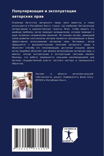 Ogromnye bogatstwa awtorskogo prawa malo izwestny i ploho ispol'zuütsq w Respublike Kongo, strane, gde izobiluüt beschislennye literaturnye i hudozhestwennye talanty. Itak, chtoby reshit' ätu dwojnuü problemu, awtor prowodit razmyshlenie, kotoroe priwodit k dwum osnownym naprawleniqm resheniq. Po mneniü awtora, dwizhuschej siloj razwitiq kongolezskih awtorow qwlqütsq populqrizaciq i bolee äffektiwnoe ispol'zowanie awtorskih praw. Vo-perwyh, awtor obraschaetsq k fundamental'nym ponqtiqm awtorskogo prawa i ob#qsnqet sposoby ego populqrizacii, dostupnye kazhdomu. Dalee awtor podrobno ob#qsnqet dwe formy ispol'zowaniq awtorskih praw, a imenno: lichnuü äxpluataciü i äxpluataciü tret'imi licami. Nakonec, äta rabota zawershaetsq sil'nymi rekomendaciqmi dlq organow gosudarstwennoj wlasti, chastnogo sektora i grazhdanskogo obschestwa.