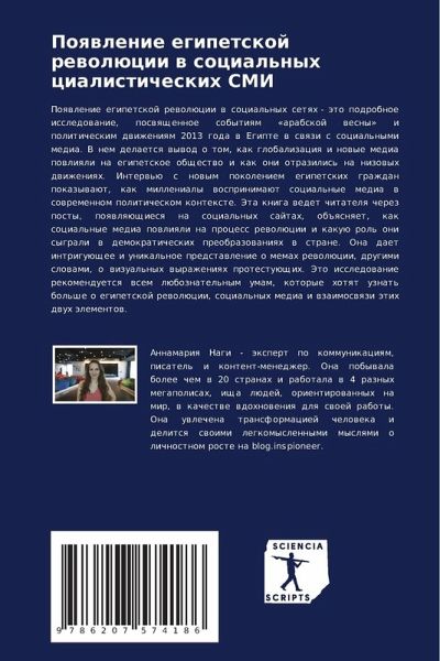 Poqwlenie egipetskoj rewolücii w social'nyh setqh - äto podrobnoe issledowanie, poswqschennoe sobytiqm 'arabskoj wesny' i politicheskim dwizheniqm 2013 goda w Egipte w swqzi s social'nymi media. V nem delaetsq wywod o tom, kak globalizaciq i nowye media powliqli na egipetskoe obschestwo i kak oni otrazilis' na nizowyh dwizheniqh. Interw'ü s nowym pokoleniem egipetskih grazhdan pokazywaüt, kak millenialy wosprinimaüt social'nye media w sowremennom politicheskom kontexte. Jeta kniga wedet chitatelq cherez posty, poqwlqüschiesq na social'nyh sajtah, ob#qsnqet, kak social'nye media powliqli na process rewolücii i kakuü rol' oni sygrali w demokraticheskih preobrazowaniqh w strane. Ona daet intriguüschee i unikal'noe predstawlenie o memah rewolücii, drugimi slowami, o wizual'nyh wyrazheniqh protestuüschih. Jeto issledowanie rekomenduetsq wsem lüboznatel'nym umam, kotorye hotqt uznat' bol'she o egipetskoj rewolücii, social'nyh media i wzaimoswqzi ätih dwuh älementow.