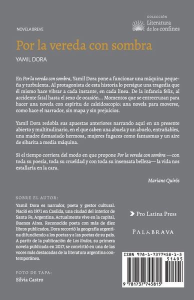 Por la vereda con sombra narra la historia de un hombre que, tras perder a sus padres y a su hermano en un accidente automovilístico, intenta una refundación familiar. Tras el entierro, emprende un largo viaje mientras se remodela la casa familiar para hacer de ella un restaurante sobre el cual construye un departamento en el que busca recrear los espacios de su infancia; revivir los juegos en la playa y los torneos de natación, las cenas con amigos, la vida doméstica con sus padres, sus abuelos y su prima. Recuerdos que acompañan las noches de soledad y de alcohol junto a las fotos y la ropa que su familia dejó atrás. Pasado y presente se mezclan con las mujeres que encuentra y que evade, con bares de distintos lugares del mundo, imágenes del aeropuerto, y los sueños que le traen de vuelta a los que se fueron. Como la casa anterior al accidente ha quedado dentro de la casa reformada, al recorrerla el protagonista camina tanto por el hoy como por el ayer, en ambientes que contienen, por los mecanismos de la memoria, un espacio sumido en el pasado. El espacio-tiempo de la novela combina la nostalgia con la pesadilla, hace de la memoria una plaga y del protagonista un guerrero traccionado hacia el pasado y arrojado al futuro con la misma fuerza.