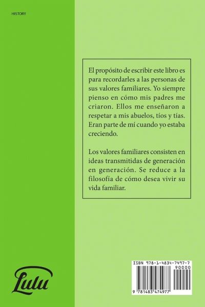El propósito de escribir este libro es para recordarles a las personas de sus valores familiares. Yo siempre pienso en cómo mis padres me criaron. Ellos me enseñaron a respetar a mis abuelos, tíos y tías. Eran parte de mí cuando yo estaba creciendo. Los valores familiares consisten en ideas transmitidas de generación en generación. Se reduce a la filosofía de cómo desea vivir su vida familiar.