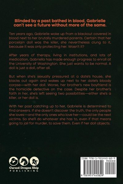Her past is bathed in blood. But without trustworthy memories to guide her, her future may be equally drenched in red. Ten years ago, Gabrielle woke up from a blackout covered in blood next to her brutally murdered parents. Certain that her porcelain doll was the killer, she nevertheless clung to it, because it was only protecting her. Wasn't it? After years of therapy, living in institutions, and lots of medication, Gabrielle has made enough progress to enroll at the University of Washington. She just wants to be normal. A doll is just a doll, after all. But when she's sexually pressured at a date's house, she blacks out again and wakes up next to her date's bloody corpse-with her doll. Worse, her brother's new boyfriend is the homicide detective on the case. Despite her brother's faith in her, she's left seeing two possibilities-either she's a killer, or her doll is. With her past catching up to her, Gabrielle is determined to find answers. If she doesn't discover the truth, the only people she loves-and the only ones who love her-could be the next victims. So she'll do whatever she has to, even if that means going to jail for murder, to save them.