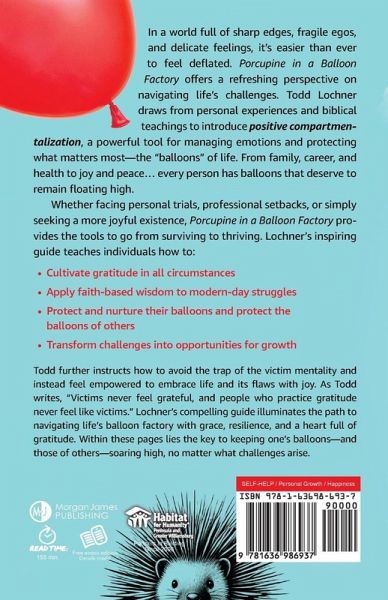 Porcupine in a Balloon Factory is a transformative guide that introduces the concept of positive compartmentalization as a powerful tool for navigating life's challenges.Through personal anecdotes, biblical wisdom, and practical strategies, Todd Lochner teaches people how to manage their emotions and protect their most cherished aspects of life-their "balloons." Porcupine in a Balloon Factory explores how to cultivate gratitude in all circumstances, break free from the victim mentality, and apply faith-based principles to modern-day struggles.Lochner’s unique approach combines spiritual insights with actionable steps, offering a fresh perspective on personal growth and resilience. By addressing common issues such as work stress, relationship difficulties, and personal setbacks, Lochner provides a road map for people to not just survive but thrive amidst adversity, empowering them to take control of their reactions, nurture meaningful relationships, and find joy even in challenging times.Porcupine in a Balloon Factory offers a blend of relatable storytelling, biblical guidance, and practical exercises that people can immediately apply to their lives, addressing the universal need for emotional management and personal accountability in a world that often encourages victimhood and negativity.