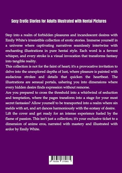 Indulge in an Unforgettable Journey of Passion and Temptation with Emily White's Erotic Masterpiece!Step into a captivating world where seduction knows no bounds in Emily White's latest collection of scintillating erotic stories, enriched with enchanting hentai illustrations. Immerse yourself in a universe where each word is a whispered promise, and every brushstroke is a visual enchantment that brings fantasies to life in pure hentai style.This collection is a daring invitation to explore the uncharted depths of desire, where pleasure unfolds with audacious strokes and details that will quicken your heartbeat. The carefully crafted hentai illustrations serve as sensuous portals, transporting you into dimensions where every hidden fantasy finds unabashed expression.What to Expect:- A Fusion of Literary Mastery and Sensual Artistry- Explicit and Alluring Hentai Illustrations- Stories That Explore the Boundaries of Lust and Fantasy- A Whirlwind of Seduction and TemptationThis isn'tjust a collection; it's your exclusive ticket to a dimension of hentai eros, meticulously narrated and ardently illustrated by Emily White. Lift the cover and prepare for an intense experience fueled by the flame of passion.Caution: This Collection is Not for the Faint of Heart. Are You Ready to Cross the Threshold?