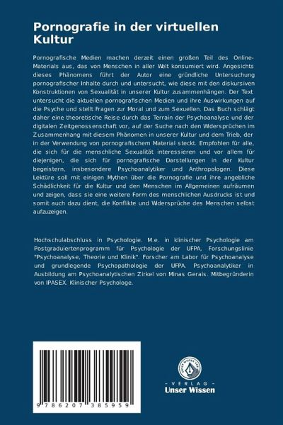 Pornografische Medien machen derzeit einen großen Teil des Online-Materials aus, das von Menschen in aller Welt konsumiert wird. Angesichts dieses Phänomens führt der Autor eine gründliche Untersuchung pornografischer Inhalte durch und untersucht, wie diese mit den diskursiven Konstruktionen von Sexualität in unserer Kultur zusammenhängen. Der Text untersucht die aktuellen pornografischen Medien und ihre Auswirkungen auf die Psyche und stellt Fragen zur Moral und zum Sexuellen. Das Buch schlägt daher eine theoretische Reise durch das Terrain der Psychoanalyse und der digitalen Zeitgenossenschaft vor, auf der Suche nach den Widersprüchen im Zusammenhang mit diesem Phänomen in unserer Kultur und dem Trieb, der in der Verwendung von pornografischem Material steckt. Empfohlen für alle, die sich für die menschliche Sexualität interessieren und vor allem für diejenigen, die sich für pornografische Darstellungen in der Kultur begeistern, insbesondere Psychoanalytiker und Anthropologen. Diese Lektüre soll mit einigen Mythen über die Pornografie und ihre angebliche Schädlichkeit für die Kultur und den Menschen im Allgemeinen aufräumen und zeigen, dass sie eine weitere Form des menschlichen Ausdrucks ist und somit auch dazu dient, die Konflikte und Widersprüche des Menschen selbst aufzuzeigen.