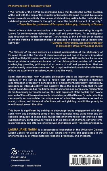 This book provides a highly accessible, detailed examination of the philosophy of Edmund Husserl. Challenging current scholarly debates on self and personhood, Laura Jane Nanni offers an alternative understanding of the self as porous.