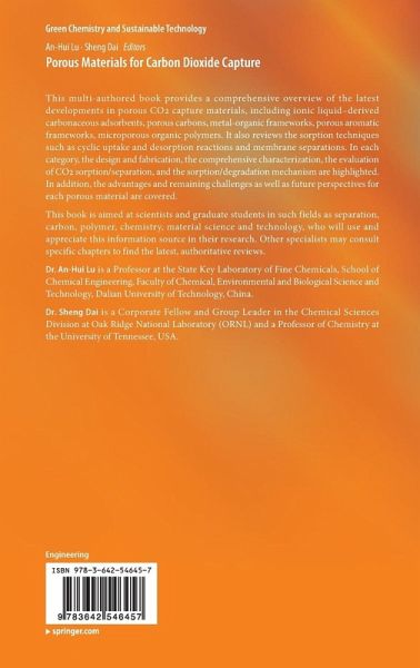 This multi-authored book provides a comprehensive overview of the latest developments in porous CO2 capture materials, including ionic liquid-derived carbonaceous adsorbents, porous carbons, metal-organic frameworks, porous aromatic frameworks, micro porous organic polymers. It also reviews the sorption techniques such as cyclic uptake and desorption reactions and membrane separations. In each category, the design and fabrication, the comprehensive characterization, the evaluation of CO2 sorption/separation and the sorption/degradation mechanism are highlighted. In addition, the advantages and remaining challenges as well as future perspectives for each porous material are covered.