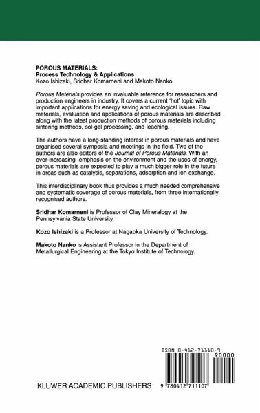 Approximately four million years of human history has passed. We have been using materials to make a variety of tools. The first materials used were naturally occurring materials such as animal bones, stones, wood etc.; and some of these familiar materials are porous. Porous materials are so familiar that they are sometimes forgotten or ignored. The taste experience of ice cream is created not only by adjusting ingre dients, but also by including air as an ingredient, i.e. pores that give the smooth texture of ice cream. This book is designed to describe and explain about pores, the synthesis of materials with pores (porous materials), and applications of porous materi als. This book is intended for engineers and scientists of different disciplines and specialities, and is expected to be useful in the design and synthesis of porous materials for existing as well as potential new applications. Let us rediscover pores. K. Ishizaki, S. Komameni and M. Nanko January 1998 1 Introduction 1.1 WHAT ARE POROUS MATERIALS? Porous materials are dermed as solids containing pores. Figure 1.1 shows different porous materials. Generally speaking, porous materials have a porosity of 0.2-0.95. The porosity means the fraction of pore volume to the total volume. Porous materials have been used in various applications from daily necessities, such as purifying drinking water by activated carbon or porous ceramics, to uses in modern industries, for example removing dusts from high purity process gases for semiconductor production.