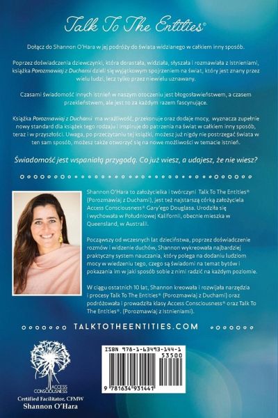 Przy¿¿cz si¿ do podró¿y z Shannon O’Har¿, podró¿y po ¿wiecie widzianym zupe¿nie innymi oczami. „Porozmawiaj z Duchami" zabiera Ci¿ krok po kroku do innego ¿wiata, ¿wiata dziewczynki, która dorasta widz¿c, s¿ysz¿c i rozmawiaj¿c z tymi, którzy s¿ niewidzialni, nies¿yszalni i bardzo rzadko zauwäani. Czasem jest to podró¿ b¿ogos¿awiona, a czasem przekl¿ta, ale na kädym kroku bardzo ciekawa i interesuj¿ca. To rzucenie okiem na ¿wiat, który jest znany dla wielu osób, ale przez niewielu zauwäany. Wräliwe, przekonuj¿ce i wzmacniaj¿ce „Porozmawiaj z Duchami" wyznacza nowe standardy dla ksi¿¿ek tego rodzaju i ci¿gle inspiruj¿co zaprasza do innego postrzegania ¿wiata teraz i w przysz¿öci. Uwaga, po przeczytaniu tej ksi¿¿ki, möesz jü nigdy nie patrze¿ na ¿wiat w ten sam sposób i möesz uruchomi¿ swoje zdolnöci porozumiewania si¿ z duchami. ¿wiadomö¿ jest niezwyk¿¿ przygod¿, co wiesz, ¿e udajesz, ¿e nie wiesz?