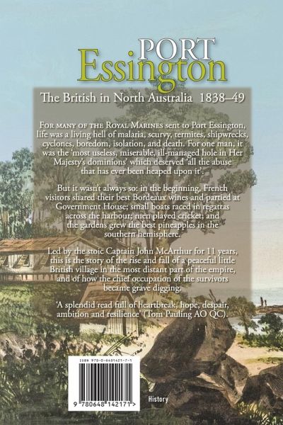 For many of the Royal Marines sent to Port Essington, life was a living hell of malaria, scurvy, termites, shipwrecks, cyclones, boredom, isolation and death. For one man, it was the 'most useless, ill-managed hold in Her Majesty's dominions' which deserved 'all the abuse that has ever been heaped upon it'. But it wasn't always so: in the beginning, French visitors shared their best Bordeaux wines and partied at Government House; small boats raced in regattas across the harbour; men played cricket; and the gardens grew the best pineapples in the southern hemisphere. Led by the stoic Captain John McArthur for 11 years, this is the story of the rise and fall of a peaceful little British village in the most distant part of the empire, and of how the chief occupation of the survivors became grave digging. 'A splendid read full of heartbreak, hope, despair, ambition and resilience' (Tom Pauling AO QC)
