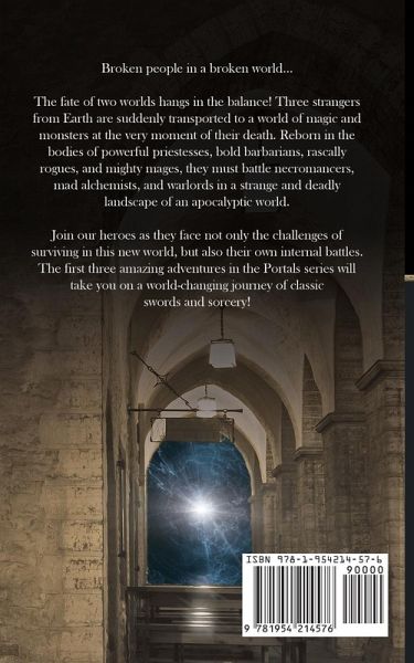 Broken people in a broken world... The fate of two worlds hangs in the balance! Three strangers from Earth are suddenly transported to a world of magic and monsters at the very moment of their death. Reborn in the bodies of powerful priestesses, bold barbarians, rascally rogues, and mighty mages, they must battle necromancers, mad alchemists, and warlords in a strange and deadly landscape of an apocalyptic world. Join our heroes as they face not only the challenges of surviving in this new world, but also their own internal battles. The first three amazing adventures in the Portals series will take you on a world-changing journey of classic swords and sorcery! If you enjoyed the intensity of the "Wheel of Time" series or the captivating world of "The Lord of the Rings", you'll love the Portals series!