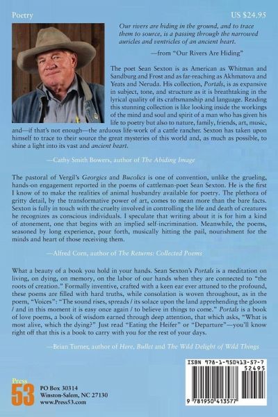 Portals: Poems by Sean Sexton is as expansive in subject, tone, and structure as it is breathtaking in the lyrical quality of its craftsmanship and language. Reading this stunning collection is like looking inside the workings of the mind and soul and spirit of a man who has given his life to poetry but also to nature, family, friends, art, music, and-if that's not enough-the arduous life-work of a cattle rancher.