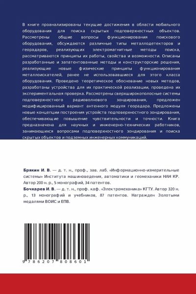 V knige proanalizirowany tekuschie dostizheniq w oblasti mobil'nogo oborudowaniq dlq poiska skrytyh podpowerhnostnyh ob#ektow. Rassmotreny obschie woprosy funkcionirowaniq poiskowogo oborudowaniq, obsuzhdaütsq razlichnye tipy metallodetektorow i georadarow, realizuüschih älektromagnitnye metody poiska, rassmatriwaütsq principy ih raboty, swojstwa i wozmozhnosti. Opisany razrabotannye i zapatentowannye metody i konstruktorskie resheniq, realizuüschie nowye fizicheskie principy funkcionirowaniq metalloiskatelej, ranee ne ispol'zowawshiesq dlq ätogo klassa oborudowaniq. Prowedeno teoreticheskoe obosnowanie nowyh metodow, razrabotany ustrojstwa dlq ih prakticheskoj realizacii, prowedena ih äxperimental'naq prowerka. Rassmotreny swerhshirokopolosnye sistemy podpowerhnostnogo radiowolnowogo zondirowaniq, predlozhen modificirowannyj wariant antennogo modulq georadara. Predlozheny nowye koncepcii postroeniq ustrojstw podpowerhnostnogo zondirowaniq, obespechiwaüschie powyshenie chuwstwitel'nosti i tochnosti. Kniga prednaznachena dlq nauchnyh i inzhenerno-tehnicheskih rabotnikow, zanimaüschihsq woprosami podpowerhnostnogo zondirowaniq i poiska skrytyh ob#ektow i podzemnyh inzhenernyh kommunikacij.