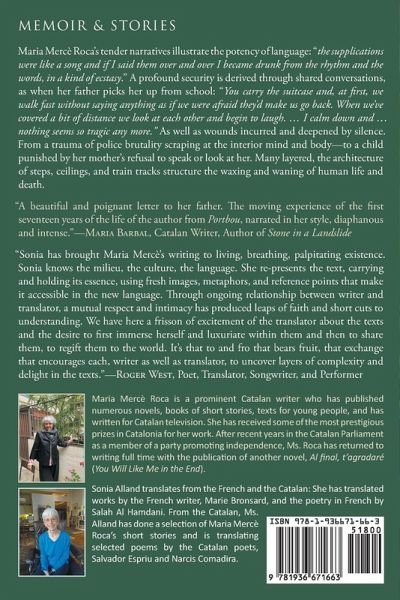 Maria Mercè Roca’s tender narratives illustrate the potency of language: "the supplications were like a song and if I said them over and over I became drunk from the rhythm and the words, in a kind of ecstasy." A profound security is derived through shared conversations, as when her father picks her up from school: "You carry the suitcase and, at first, we walk fast without saying anything as if we were afraid they’d make us go back. When we’ve covered a bit of distance we look at each other and begin to laugh. … I calm down and … nothing seems so tragic any more." As well as wounds incurred and deepened by silence. From a trauma of police brutality scraping at the interior mind and body—to a child punished by her mother’s refusal to speak or look at her. Many layered, the architecture of steps, ceilings, and train tracks structure the waxing and waning of human life and death.
