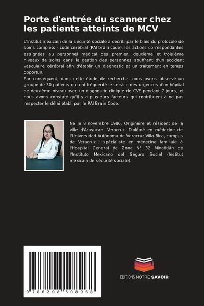 L'Institut mexicain de la sécurité sociale a décrit, par le biais du protocole de soins complets - code cérébral (PAI brain code), les actions correspondantes assignées au personnel médical des premier, deuxième et troisième niveaux de soins dans la gestion des personnes souffrant d'un accident vasculaire cérébral afin d'établir un diagnostic et un traitement en temps opportun. Par conséquent, dans cette étude de recherche, nous avons observé un groupe de 30 patients qui ont fréquenté le service des urgences d'un hôpital de deuxième niveau avec un diagnostic clinique de CVE pendant 7 jours, et nous avons constaté qu'il y a plusieurs facteurs qui contribuent à ne pas respecter le délai établi par le PAI Brain Code.