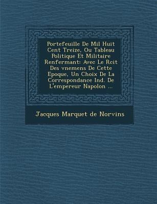 This is a reproduction of a book published before 1923. This book may have occasional imperfections such as missing or blurred pages, poor pictures, errant marks, etc. that were either part of the original artifact, or were introduced by the scanning process. We believe this work is culturally important, and despite the imperfections, have elected to bring it back into print as part of our continuing commitment to the preservation of printed works worldwide. We appreciate your understanding of the imperfections in the preservation process, and hope you enjoy this valuable book. ++++ The below data was compiled from various identification fields in the bibliographic record of this title. This data is provided as an additional tool in helping to ensure edition identification: ++++ Portefeuille De Mil Huit Cent Treize, Ou Tableau Politique Et Militaire Renfermant: Avec Le R�cit Des �v�nemens De Cette Epoque, Un Choix De La Correspondance In�d. De L'empereur Napol�on ...; Volume 1 Of Portefeuille De Mil Huit Cent Treize, Ou Tableau Politique Et Militaire Renfermant: Avec Le R�cit Des �v�nemens De Cette Epoque, Un Choix De La Correspondance In�d. De L'empereur Napol�on; Jacques Marquet De Norvins Jacques Marquet de Norvins Mongie, 1825