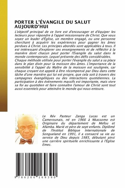 L'objectif principal de ce livre est d'encourager et d'équiper les lecteurs pour répondre à l'appel missionnaire de Christ. Que vous soyez un leader d'Église, un membre engagé, ou une personne cherchant à acquérir les expériences pour gagner les âmes perdues à Christ. Les principes abordés sont applicables à tous. Il est intéressant d'explorer ces enseignements et de réfléchir à la manière dont chacun peut porter l'Évangile du salut dans le monde contemporain. Lequel présente des défis considérables.Chaque méthode utilisée pour porter l'évangile du salut a sa place dans le plan divin pour la moisson des âmes. L'importance de la sensibilité à l'appel du Maître de la moisson est soulignée, car chaque croyant est appelé à être récompensé par Dieu dans cette tâche d'une manière qui lui est propre, que cela soit à travers des campagnes évangéliques ou des interactions quotidiennes. La participation à des événements massifs est importante, mais vivre sa foi au quotidien et faire connaître l'amour de Christ sont tout aussi essentiels pour atteindre le monde qui nous entoure.