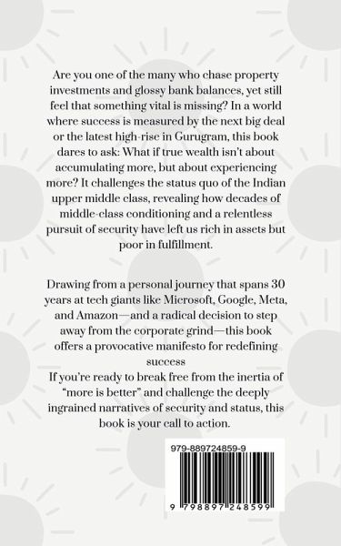 In a world where success is measured by bank balances, properties, and luxury cars, it's easy to lose sight of what truly makes life rich. In this provocative exploration, Amit shares his journey from the high-stress corridors of tech giants like Microsoft, Google, Meta, and Amazon to a life reimagined. One where true wealth is measured in experiences, relationships, and purpose. Despite achieving a successful career, Amit discovered that relentless pursuit of more-more deals, more assets, more status-left him feeling empty. His turning point came when, among friends in their mid-fifties with secure families and impressive portfolios, he was admired (and even envied) for daring to invest in what truly matters: mentoring young minds and traveling the globe at his own expense. With wit, candor, and a healthy dose of self-reflection, Amit challenges the conventional wisdom that equates success with accumulation. Through real-life stories, he reveals how cultural conditioning can lead us astray from a life filled with genuine connection and joy. This book is both a memoir and a manifesto-a call to shift our focus from material gain to living fully. Discover practical strategies for rebalancing your priorities and investing in experiences that enrich your life. The time to rethink wealth is now-because the legacy you leave should be measured not in assets, but in the lives you touch and the memories you create.