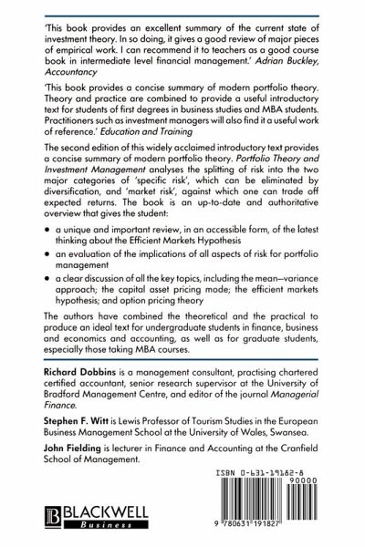 Since the first edition of this book was published, significant developments have modified the general view of the efficient market hypothesis. This fully revised second edition provides a major contribution to the study of these developments. The authors provide a concise summary of modern portfolio theory covering such issues as: * The mean-variance approach to portfolio management. * The capital asset pricing model. * The efficient market hypothesis and option pricing theories. * Risk measurement services. Combining theory and practice, this is an ideal introductory text for undergraduate and postgraduate students, as well as a useful reference for investment managers.