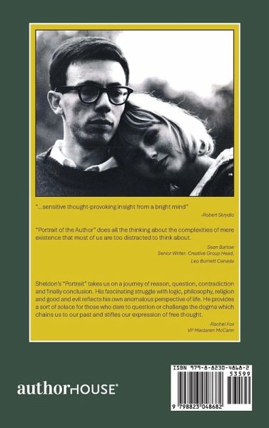"...sensitive thought-provoking insight from a bright mind" -Robert Skrydlo "Portrait of the Author" does all the thinking about the complexities of mere existence that most of us are too distracted to think about. Sean Barlow Senior Writer. Creative Group Head, Leo Burnett Canada Sheldon's "Portrait" takes us on a journey of reason, question, contradiction and finally conclusion. His fascinating struggle with logic, philosophy, religion and good and evil reflects his own anomalous perspective of life. He provides a sort of solace for those who dare to question or challenge the dogma which chains us to our past and stifles our expression of free thought. -Rachel Fox VP Maclaren McCann