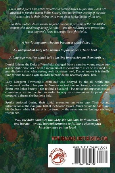 Welcome to Suddenly a Duke-the new Regency romance world from USA Today bestselling author Alexa Aston. Eight titled peers who never expected to become dukes do just that-and are attracted to females whom Polite Society does not believe worthy of the title duchess, due to their desires to be more than typical ladies of the ton. But these sudden dukes choose to forge their own paths with the remarkable women who are already doing just that-and the resulting love proves that trusting one's heart is always the right choice. A fun-loving man who has become a staid duke . . . An independent lady who wishes to pursue her artistic bent . . . A long-ago meeting which left a lasting impression on them both . . . Daniel Judson, the Duke of Westfield, changed from a carefree young rogue into a sober duke once faced with a mountain of responsibilities after he assumed his grandfather's title. After seeing both his sisters wed, Daniel knows it is finally time for him to take a wife in order to provide the necessary ducal heir. Lady Margaret Townsend's come-out was delayed by the ill health and subsequent deaths of her parents. Now an ancient four and twenty, she makes her debut into Polite Society-not to find a husband-but to secure important social connections within the ton in order to acquire commissions to paint their portraits, a dream she has long held. Sparks surfaced during their initial encounter ten years ago. Their second introduction at the inaugural ball of the Season leaves Daniel certain he has found his duchess, while Margaret is confused by the never-known feelings stirring within her. Will the duke convince this lady she can have both marriage and her art-or will her stubbornness to follow a chosen path have her miss out on love? Find the answer in Alexa Aston's Portrait of the Duke, Book 1 in Suddenly a Duke. Each book in the Suddenly a Duke series is a standalone story that can be enjoyed out of order. Suddenly a Duke Book 1 - Portrait of the Duke Book 2 - Music for the Duke Book 3 - Polishing the Duke Book 4 - Designs on the Duke Book 5 - Fashioning the Duke Book 6 - Love Blooms with the Duke Book 7 - Training the Duke Book 8 - Investigating the Duke