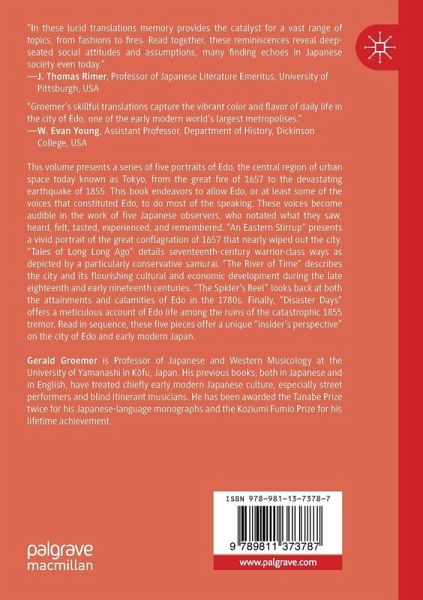 This volume presents a series of five portraits of Edo, the central region of urban space today known as Tokyo, from the great fire of 1657 to the devastating earthquake of 1855. This book endeavors to allow Edo, or at least some of the voices that constituted Edo, to do most of the speaking. These voices become audible in the work of five Japanese eye-witness observers, who notated what they saw, heard, felt, tasted, experienced, and remembered. "An Eastern Stirrup," presents a vivid portrait of the great conflagration of 1657 that nearly wiped out the city. "Tales of Long Long Ago," details seventeenth-century warrior-class ways as depicted by a particularly conservative samurai. "The River of Time," describes the city and its flourishing cultural and economic development during the late eighteenth and early nineteenth centuries. "The Spider's Reel" looks back at both the attainments and calamities of Edo in the 1780s. Finally, "Disaster Days," offers a meticulousaccount of Edo life among the ruins of the catastrophic 1855 tremor. Read in sequence, these five pieces offer a unique "insider's perspective" on the city of Edo and early modern Japan.