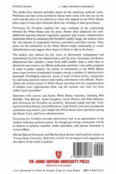 The media have become principal actors on the American political scene. Politicians and their press secretaries release news items with one eye on the event and the other on the millions of voters who depend on the White House press corps to keep them informed about the workings of their government. Portraying the President explores the inner workings of the relationship between the White House and the press. Rather than emphasize the well-publicized sparring between inquisitive reporters and evasive administrative spokesmen intent on enhancing the President's public image, the authors stress the vast amount of cooperation between journalists and their sources. They point out the similarities of the White House-media relationship in recent administrations and suggest what shape it is likely to take in the future. The authors also address the key issues of information management and manipulation by both the administration and the press. Grossman and Kumar demonstrate that, whether a lower level staff member leaks a news item to elevate his own status or an official spokesman mentions a new policy proposal in order to gather support, the release of information to the White House press corps involves complicated strategies among a number of administrative personnel. Washington reporters, aware of some of these tactics, compensate by cultivating personal sources and trading information with officials. Nevertheless, the routine nature of White House reporting and the competitiveness of modern news organizations often trap the reporter into what has been called "pack journalism." Interviews with current and former White House reporters, including Bob Schieffer, Tom Brokaw, James Naughton, James Reston, and John Osborne, give Portraying the President an authentic, firsthand sound and feel. Comments from Ron Nessen, Gerald Rafshoon, Jody Powell, and other presidential spokesmen and advisors, give insight into White House operations during the Nixon, Ford, and Carter administrations. Portraying the President provides information vital to an appreciation of the modern American political system. Its thought-provoking conclusions will be of interest political scientists, media specialists, and anyone interested in current affairs.