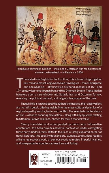 Translated into English for the first time, this volume brings together four remarkable yet long-overlooked travelogues - three Portuguese and one Spanish - offering vivid firsthand accounts of 16th- and 17th-century journeys through Iran and the Ottoman Empire. These Iberian travelers open a rare window into Safavid Iran and Ottoman Turkey, revealing the political, cultural, and religious landscapes of the time. Though little is known about the authors themselves, their observations are rich with detail, offering insight into the cross-cultural dynamics of a region shaped by empire, trade, and conflict. The selected chapters focus on Iran - a land of enduring fascination - along with key episodes relating to Ottoman-Safavid relations, chosen for their historical value. Clearly translated and accompanied by meticulous, informative annotations, this book provides essential context for readers navigating these early modern texts. With its focus on a rarely explored corner of travel literature, this book invites scholars, students, and curious readers alike to rediscover a world of perilous overland routes, imperial rivalries, and unexpected encounters across Iran and Turkey.