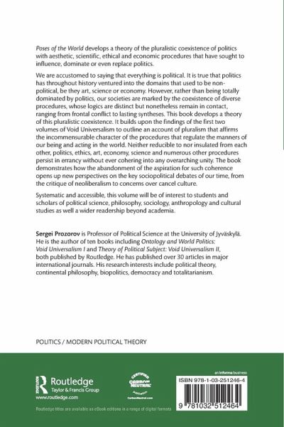 Poses of the World develops a theory of the pluralistic coexistence of politics with aesthetic, scientific, ethical and economic procedures that have sought to influence, dominate or even replace politics.