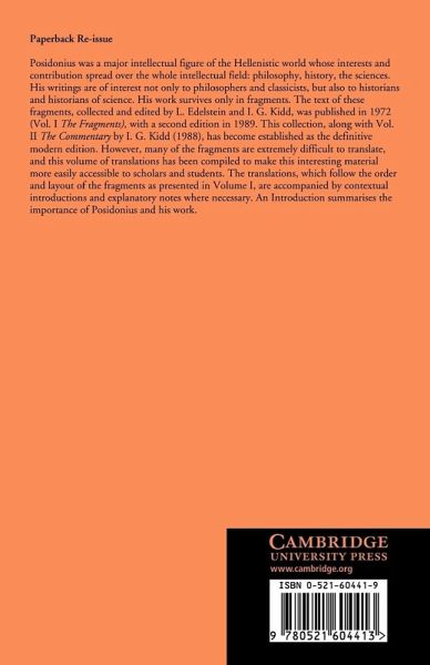 Posidonius was a major intellectual figure of the Hellenistic world whose interests and contribution spread over the whole intellectual field: philosophy, history, the sciences. His writings are of interest not only to philosophers and classicists, but also to historians and history of science. His work survives only in fragments. The text of these fragments, collected and edited by L. Edelstein and I. G. Kidd, was published in 1972 (Vol. I The Fragments), with a second edition in 1989. This collection, along with Vol. II The Commentary by I.G. Kidd (1988), has become established as the definitive modern edition. However, many of the fragments are extremely difficult to translate, and this volume of translations has been compiled to make this interesting material more easily accessible to scholars and students. The translations are accompanied by contextual introductions and explanatory notes where necessary. An Introduction summarises the importance of Posidonius and his work.